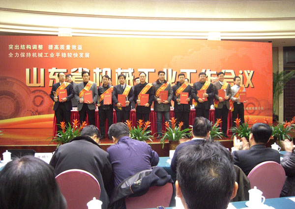 1月10日,山東省機械工業(yè)工作會議在泰安市東尊華美達酒店隆重召開,中國機械工業(yè)聯(lián)合會特別顧問朱森第、山東省機械工業(yè)協(xié)會會長劉衛(wèi)東、泰安市副市長閆新建等領(lǐng)導出席會議并頒獎。公司董事長、總經(jīng)理康鳳明,常務副總經(jīng)理潘憲平、副總經(jīng)理康峰等領(lǐng)導參加會議。董事長、總經(jīng)理康鳳明榮獲“山東省機械工業(yè)優(yōu)秀企業(yè)家”稱號,副總經(jīng)理朱洪臣榮獲“山東省機械工業(yè)有突出貢獻科技專家”稱號,副總經(jīng)理康峰榮獲“山東省機械工業(yè)優(yōu)秀企業(yè)(行業(yè))管理工作者”稱號。
