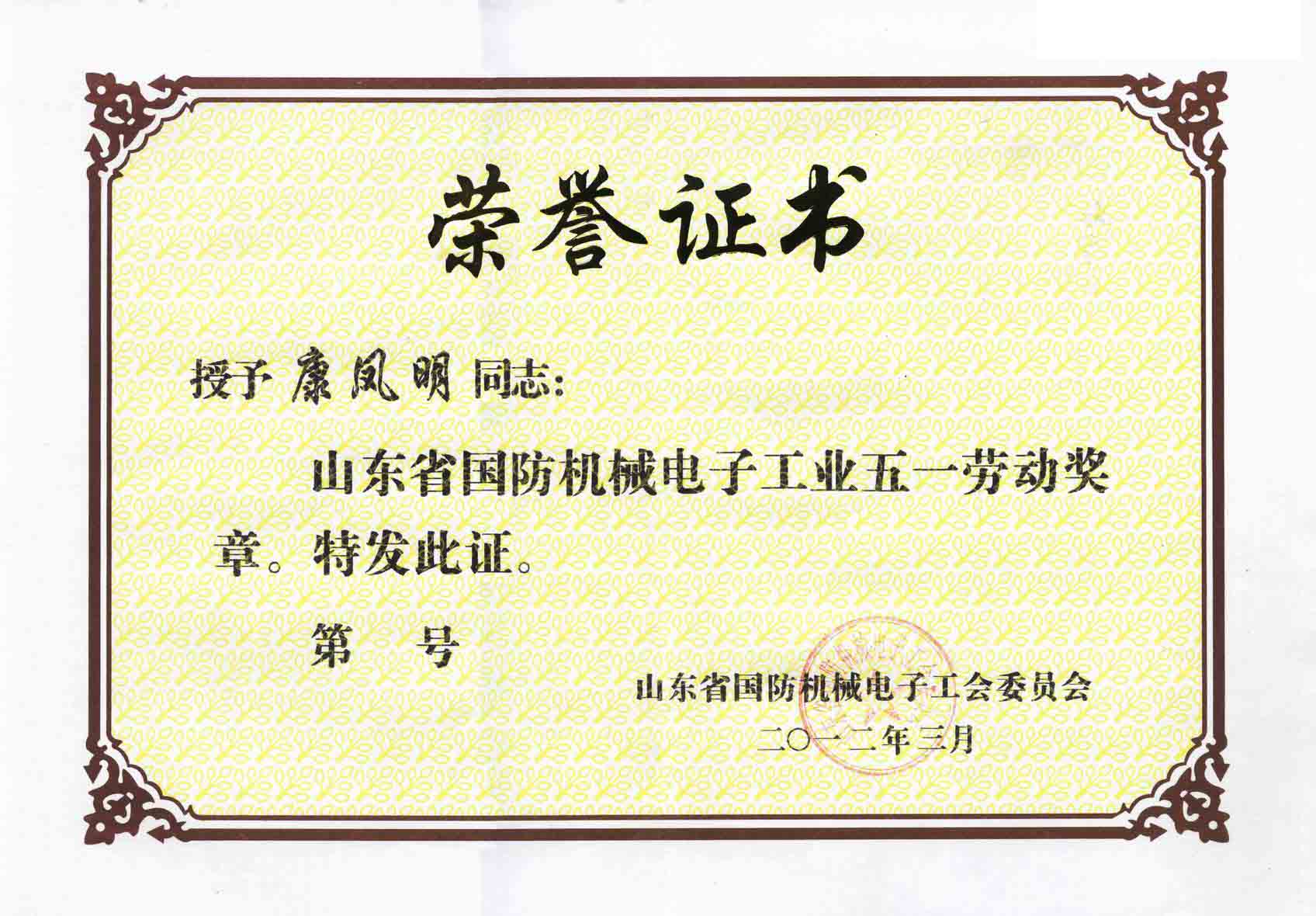 3月29日,山東省國(guó)防機(jī)械電子工會(huì)二屆二次全委會(huì)暨女職委一屆四次會(huì)議在濟(jì)南勝利召開(kāi)。會(huì)議隆重表彰了山東省國(guó)防機(jī)械電子工業(yè)“五一”勞動(dòng)獎(jiǎng)狀(章)先進(jìn)集體和個(gè)人,授予38個(gè)單位(班組)勞動(dòng)獎(jiǎng)狀,61名同志勞動(dòng)獎(jiǎng)?wù)隆<瘓F(tuán)董事長(zhǎng)、總經(jīng)理康鳳明榮獲“五一”勞動(dòng)獎(jiǎng)?wù)隆?