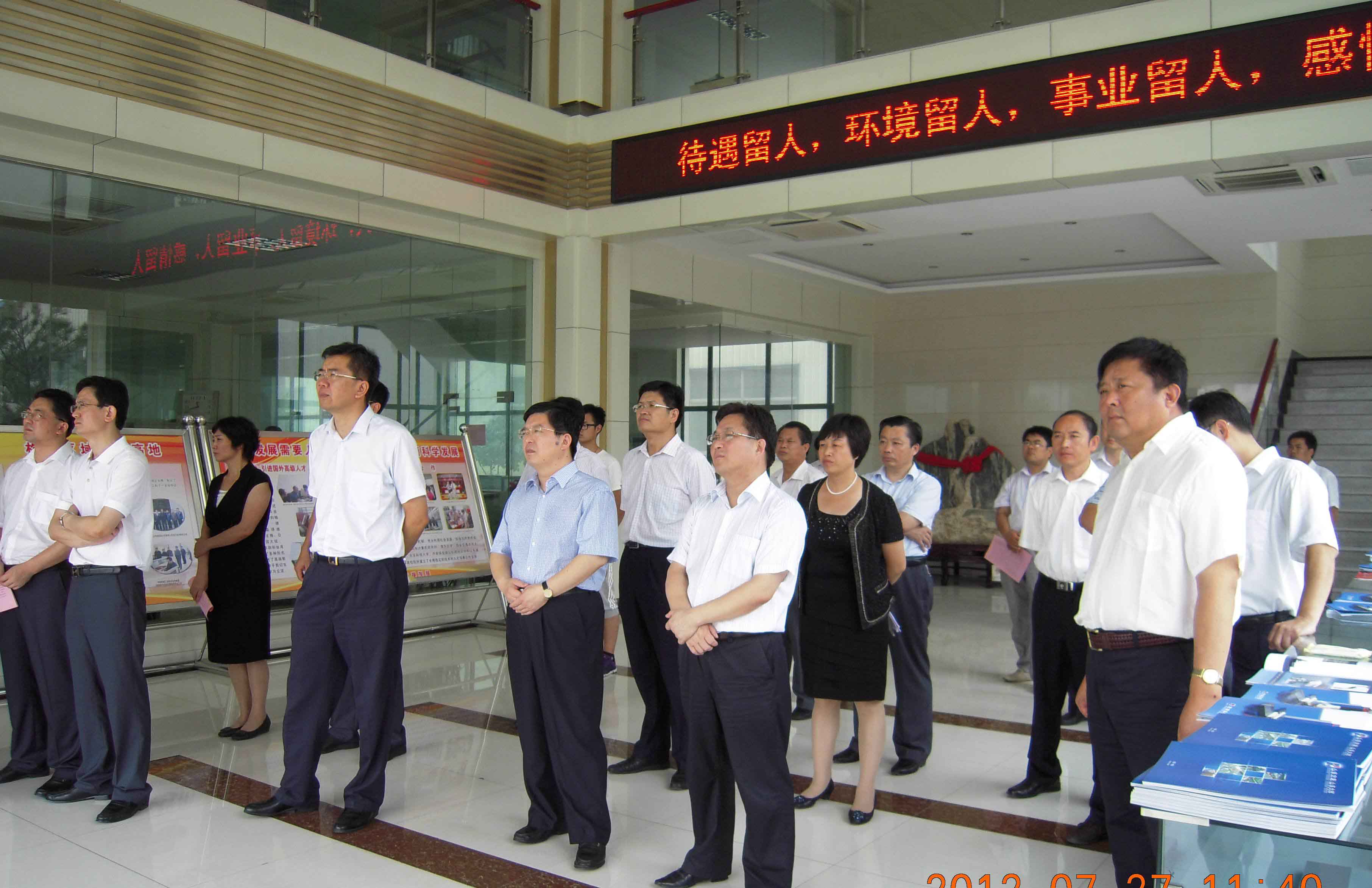 7月27日,市委副書記丁毅,市委常委、組織部長陳平,副市長徐恩虎帶領(lǐng)泰安市人才工作觀摩推進(jìn)會與會人員來集團(tuán)檢查人才工作情況。區(qū)委書記、區(qū)人大常委會主任王永征,區(qū)委常委、組織部長蔡麗霞,區(qū)委常委、辦公室主任劉琳等領(lǐng)導(dǎo)陪同活動。集團(tuán)董事長、總經(jīng)理康鳳明向與會領(lǐng)導(dǎo)匯報(bào)工作,常務(wù)副總經(jīng)理潘憲平、副總經(jīng)理聶化濤等領(lǐng)導(dǎo)陪同活動。