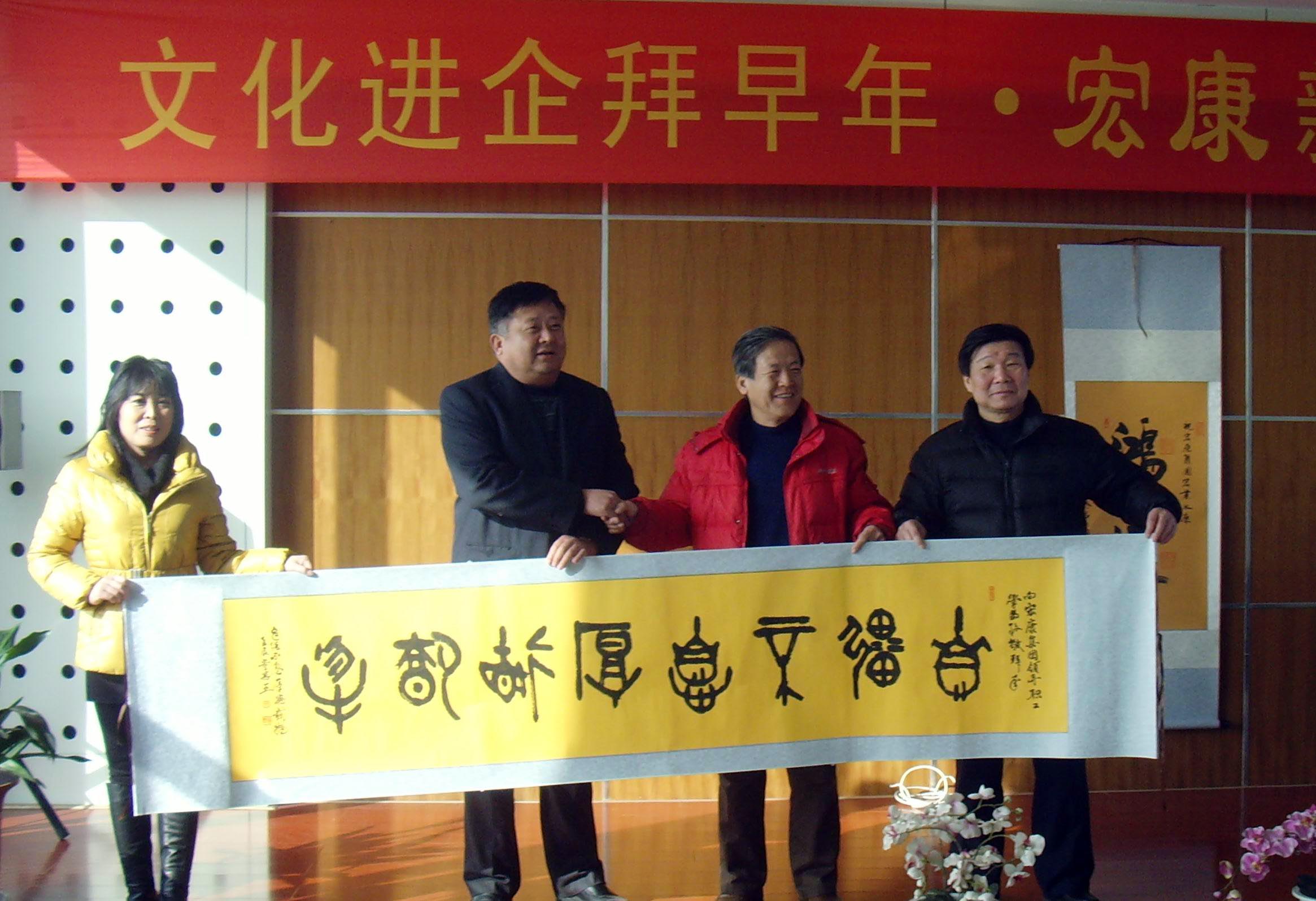 1月24日,泰山文化協會副主席、《泰山文化研究》總編、研究員呂大明,協會秘書長、研究員郭立模,畫家、山東科技大學副教授李金玲,山東省甲骨文書法協會理事、泰安市甲骨文書法協會會長、岱宗書畫院院長、泰山文化協會特聘專家、北京魯特書畫院院長董德平一行來宏康集團開展“文化進企拜早年·宏康蛇年吉祥”活動。集團董事長、總經理康鳳明,副總經理聶化濤及部分員工參加了本次活動。在活動儀式上,書畫家們先后作了熱情洋溢的講話。他們對宏康近年來的快速發展給予了高度評價,對宏康積極為國家納稅安排就業,為社會做出巨大貢獻,取得良好的社會效益給予了高度贊揚。集團董事長、總經理康鳳明作了重要講話,他說“文化進企拜早年”活動的開展,豐富了企業文化生活,并感謝各位畫家書法家們對宏康的厚愛和支持。在活動儀式上,書畫家們向宏康集團贈送了他們的作品、書籍,并現場潑墨寫字作畫、書寫春聯,一幅幅精美的字畫展現在職工面前,令人陶醉,大家對大師們的杰作欣賞之余贊不絕口。蛇年來臨之際,宏康員工飽嘗了豐富的精神文化大餐,書畫家們把溫暖送進了宏康員工心中。