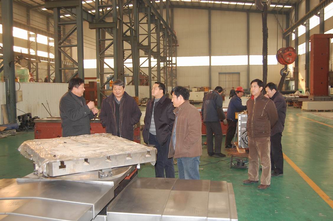 1月18日,山東省科技廳副巡視員段曉青、省機械設(shè)計研究院院長林江海一行來公司視察工作。圖為公司董事長、總經(jīng)理康鳳明在生產(chǎn)現(xiàn)場向其介紹數(shù)控銑鏜床設(shè)備。公司常務(wù)副總經(jīng)理潘憲平、副總經(jīng)理朱洪臣等領(lǐng)導(dǎo)參加座談并陪同參觀。