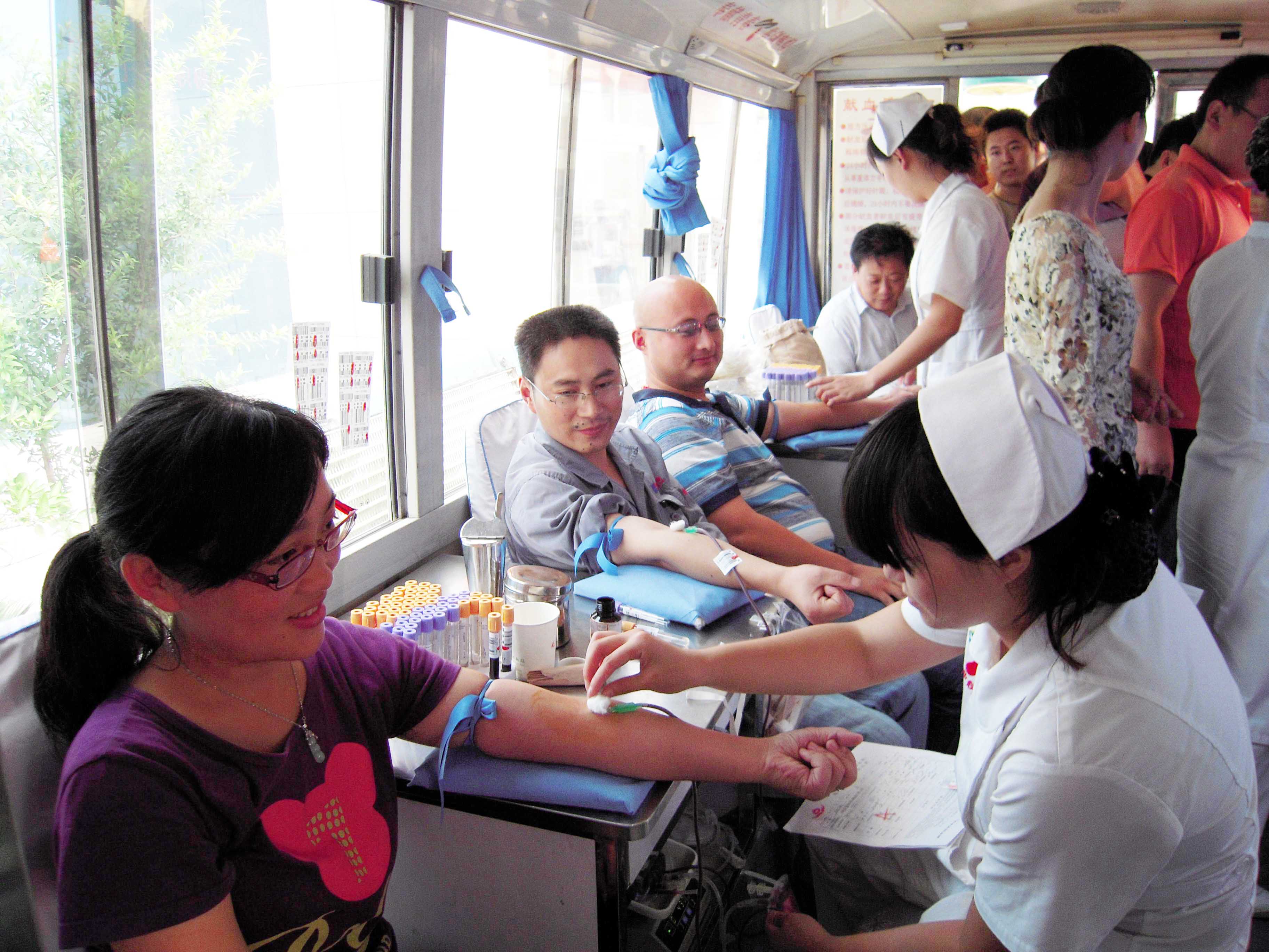 筆者看到,體檢現(xiàn)場,獻血車內(nèi),人頭攢動,報名等待體檢的人員排著長長的隊伍個個躍躍欲試,獻血車廂一直都坐滿了人,宏大感人的場面展現(xiàn)了宏康人心系社會、無私奉獻的仁義愛心和豪邁情懷。集團董事長、總經(jīng)理康鳳明雖然已接近獻血年齡紅線,卻毅然獻出了400毫升的熱血,展示了一個企業(yè)家扶危濟困、心系社會的拳拳之心和慷慨氣魄。技術中心、銷售公司、各分廠、車間部門負責人也都義無反顧地走上獻血車,和員工們一道參加本次獻血活動。愛心在涌動,獻血從上午的8點30分一直持續(xù)到下午的5點30分,大家都為能夠參與到這次愛心活動,承擔起對社會的責任而感到光榮和自豪。本次獻血活動,公司有近200名員工參與了獻血,共獻出6萬多毫升各種血型的全血漿。另有近上百名人員因時間、體質(zhì)、哺乳期、獻血時間間隔不夠等原因未能如愿獻血。獻血活動令血站的工作人員感動不已,他們對公司組織的獻血活動給予高度評價和充分肯定。