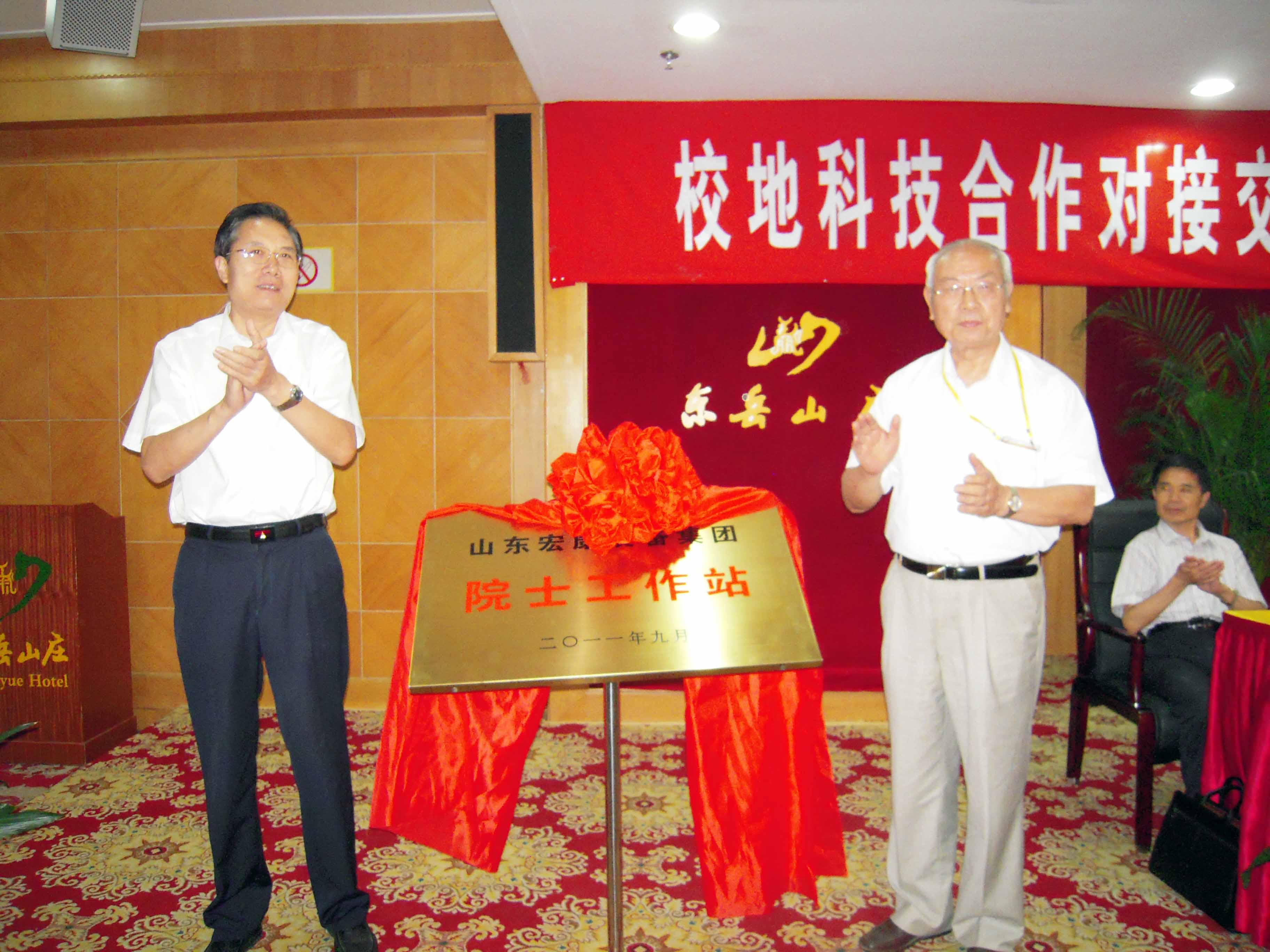揭牌儀式上,北京科技大學胡正寰院士和泰安市副市長徐恩虎共同為院士工作站進行了揭牌。胡正寰院士與董事長康鳳明簽訂了共建院士工作站協議。西安交通大學校長助理張漢榮、東華大學紡織學院院長邱夷平、市科技局局長郭向軍、副局長劉桂選、陳士昌等專家領導以及公司常務副總經理潘憲平等領導參加揭牌儀式。