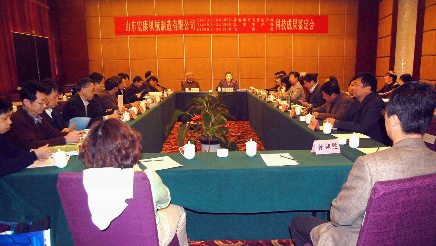 12月27日至28日,公司科技成果鑒定會在泰安市正元名飲國際酒店召開。山東省科技廳、山東省經濟和信息化委員會組織專家對公司承擔完成的三項科技成果進行了會議鑒定和驗收。T44-0.5~3.0×1850開卷矯平飛剪生產線達到同類產品的國際先進水,T44-0.5~3.0×1850開卷矯平縱剪生產線達到同類產品的國際先進水平,Q17G0.5~3×1850飛剪機達到國內領先水平。
